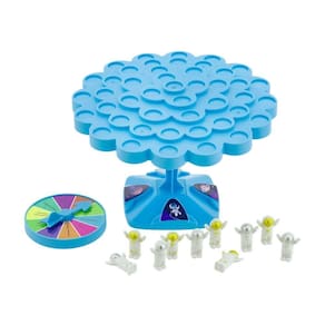 Contém: 1 suporte, 1 haste, 1 base bamba, 48 astronautas (24 azuis e 24 dourados),1 dado, 1 roleta de desafios e 1 saco plástico.