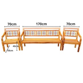 O Conjunto com 1 Banco e 2 Poltronas em Madeira de Demolição é para você que procura uma peça bonita e campestre. Altamente resistente e durável, é um item em estilo rústico com detalhes em ladrilho hidráulico, proporcionando elegância e um diferencial ao seu ambiente. A peça é produzida em madeira de demolição com acabamento em verniz, dando mais resistência e durabilidade no produto. Deixe sua casa ainda mais bonita e sofisticada com o Conjunto com 1 Banco e 2 Poltronas da Sudeste Rústico.