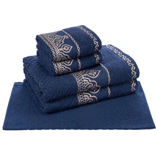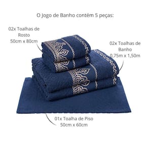 Contém: 05 Peças 02 Toalhas de banho gigante 0,75x1,50m 02 Toalhas de Rosto 0,50x0,80m 01 Piso Toalha 0,50x0,60m