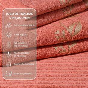 Contém: 05 Peças 02 Toalhas de banho gigante 0,80x1,60m 02 Toalhas de rosto 0,50x0,80m 01 Piso toalha 0,50x0,70m