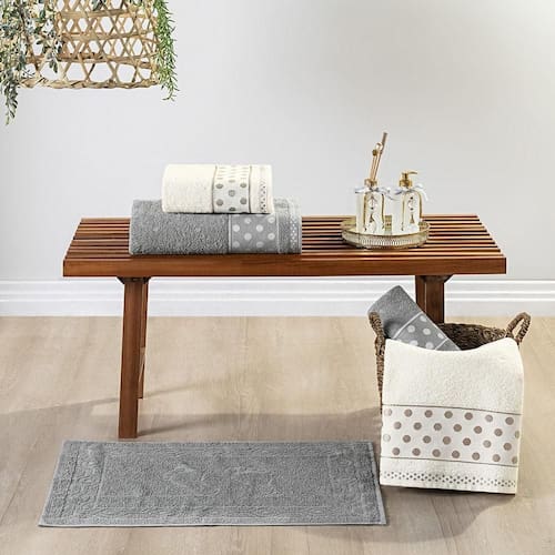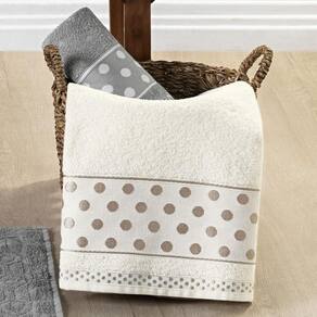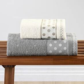 Jogo de Banho Meggy Poá Bolinhas Toalhas Macias 100% Algodão 5 Peças - Cinza Granito e Pérola