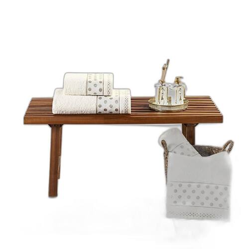 Jogo de Banho Meggy Poá Bolinhas Toalhas Macias 100% Algodão 5 Peças - Pérola Descubra o toque macio e o design elegante do Jogo de Banho Meggy Poá. Composto por 5 peças essenciais - 2 Toalhas de Banho, 2 Toalhas de Rosto e 1 Piso, este conjunto foi pensado para elevar a sua experiência diária de autocuidado, proporcionando conforto e sofisticação.