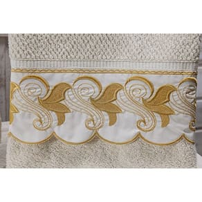 Jogo de banho noblesse luxo bordado 05 peças palha com bordado mostarda Jogo de banho noblesse luxo bordado 05 peças