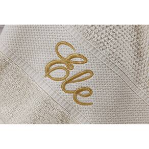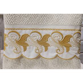 O Jogo de Banho Noblesse Luxo Bordado conta com 05 peças palha com bordado mostarda . São toalhas de ótima qualidade e bordadas com requinte e sofisticação. 100% algodão, é um jogo que apresenta maciez, conforto e durabilidade.Peças do jogo:- 01 toalha de banho bordado barrado 140 x 70 cm - 01 toalha banho bordado ele 140 x 70 cm- 01 toalha rosto bordado barrado 80 x 50 cm- 01 toalha rosto bordado ele 80 x 50 cm- 01 piso 50 x 70 cmEspecificações técicasMarca: DianneliModelo: Jogo Banho Noblesse Luxo BordadoQuantidade de peças: 05Composição: 100% algodãoGramatura: 370g/m2LavagemLavar as toalhas antes de usar para tornar mais macia e mais absorvente. Diversas lavagens são necessárias para que toalhas felpudas 100% algodão obtenham sua absorção máxima, fofura e maciez. Usar sabão neutro e não utilizar amaciante de tecido, isso reduz a capacidade de absorção da toalha, pois danifica a fibra. Não torcer a toalha, secar a sombra e não colocar em secadora. Não passar a ferro. Marca: Thais Enxovais