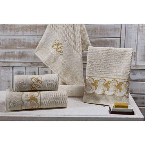 O Jogo de Banho Noblesse Luxo Bordado conta com 05 peças palha com bordado mostarda . São toalhas de ótima qualidade e bordadas com requinte e sofisticação. 100% algodão, é um jogo que apresenta maciez, conforto e durabilidade.Peças do jogo:- 01 toalha de banho bordado barrado 140 x 70 cm - 01 toalha banho bordado ele 140 x 70 cm- 01 toalha rosto bordado barrado 80 x 50 cm- 01 toalha rosto bordado ele 80 x 50 cm- 01 piso 50 x 70 cmEspecificações técicasMarca: DianneliModelo: Jogo Banho Noblesse Luxo BordadoQuantidade de peças: 05Composição: 100% algodãoGramatura: 370g/m2LavagemLavar as toalhas antes de usar para tornar mais macia e mais absorvente. Diversas lavagens são necessárias para que toalhas felpudas 100% algodão obtenham sua absorção máxima, fofura e maciez. Usar sabão neutro e não utilizar amaciante de tecido, isso reduz a capacidade de absorção da toalha, pois danifica a fibra. Não torcer a toalha, secar a sombra e não colocar em secadora. Não passar a ferro. Marca: Thais Enxovais