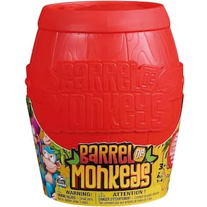 Divertido e cheio de nostalgia, o clássico Barrel of Monkeys(Barril de Macacos) está de volta com visual renovado: novas cores e expressões dos macacos, mantendo toda a essência do jogo. Ideal para crianças a partir de 4 anos, o objetivo é formar a maior corrente de macacos possível sem deixar nenhum cair. Quem juntar mais em uma única jogada, vence!
