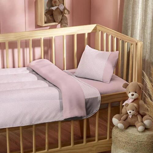 Jogo Berço Malha C/3Peças Baby Ninar Coleção Mini Dots O Jogo de Berço 3 Peças Atlântica Baby Ninar Mini Dots trazem todo o aconchego e conforto para seu bebê. Apresenta estampa delicada de bolinhas. Seu tecido especial de alta qualidade em fio penteado é leve e de secagem rápida. Traz a maciez e cuidado de um carinho de mãe para noites tranquilas de sono para o seu queridinho - Contém: 1 lençol com elástico - 70cm x 1,30 m x 15 cm 1 sobre lençol - 90cm x 130cm 1 fronha - 30cm x 40cm - Composição: 100% Algodão Fio Penteado - Distribuidor: Atlântica
