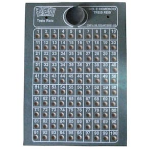 Jogo Bingo Vispora Treis Reis Nº3 Cromado Completo 100 Bolas Com o Bingo Vispora da Treis Reis você tem diversão garantida em suas festas e eventos. Com acabamento em madeira, ele proporciona um ar retro, que possa ser interessante, já que é um dos mais antigos jogos já criados. Globo e Hastes cromados, 100 bolas em madeira de 21mm numeradas, tabuleiro com numeração para 100 peças em madeira, proporcionando maiores possibilidades entre os participantes. Medidas do Globo N3 Globo: - Altura: 32 cm - Largura: 23 cm Coluna: 25 cm Tabuleiro: 30x44 cm Bola: 21 mm, numeradas do 1 ao 100