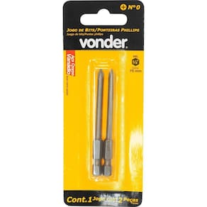 Conteúdo Embalagem:1 Cartela com 2 bits/ponteiras phillipsDestaques e diferenciais:Produzido em aço cromo vanádio, proporcionando maior resistência e durabilidade. Conta com acabamento jateado, que proporciona ótima proteção contra oxidação. Também possui corpo rebaixado, que possibilita o uso em locais de difícil acesso.Aplicações e dicas de uso:Indicado para apertar e soltar parafusos com cabeça fenda cruzada phillips . Utilizado em parafusadeiras e suportes manuais.Características Técnicas:Material do Bits ponteira: Aço cromo vanádio Comprimento total do bits Phillips: 75 mm Número da ponta do bits Phillips: Nº0 - 1/8 Tipo do encaixe do bits: Sextavado - 1/4 Acabamento do Bits: JateadoGarantia: legal: 90 dias Marca: Não Informado Ean: 7893946555719