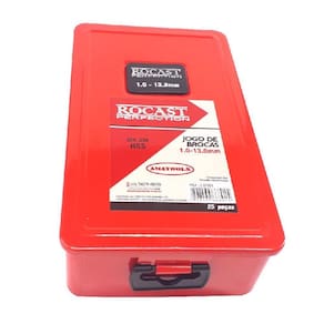 O Jogo de Brocas Helicoidais Com Haste Cilíndrica em HSS Com 25 Peças 5,0161 - Rocast, é um conjunto de ferramentas cortantes utilizadas para fazer furos cilíndricos e acabamentos em peças de diferentes tipos de materiais. Elas proporcionam a melhor combinação de taxa entre e precisão; Além disso Conseguem manter o corte da ferramenta por um período maior. Descrição do Produto: Material: Aço Rápido. Acabamento: Brilhante. Haste: Cilíndrica. Aplicação: usinagem de aço com dureza até 45 HRC. Apresentação: estojo metálico/blister. Norma: DIN 338 N. Composição do Jogo de Brocas de 10 á 13 Milímetros: 1,0 - 1,5 - 2,0 - 2,5 - 3,0 - 3,5 - 4,0 - 4,5 - 5,0 - 5,5 - 6,0 - 6,5 - 7,0 - 7,5 - 8,0 - 8,5 - 9,0 - 9,5 - 10,0 - 10,5 - 11,0 - 11,5 - 12,0 - 12,5 - 13,0. Referência: 5,0161. Cód. De Fábrica: 5,0161. Marca: Rocast.