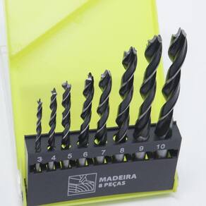 DescriçãoJogo de brocas para madeira kit com 8 peças Broca 3 pontas, especifico para madeiraFabricado em aço especial, perfeito para a madeira.Produz um furo mais limpo, rápido e com menor esforço.São adequadas para furar madeiras moles, duras, compensados de pinho, de virola, aglomerados, fórmicas, plásticos e fibras sintéticas.Kit com as seguintes medidas:3mm x 6cm4mm x 7,5cm5mm x 8,5cm6mm x 9cm7mm x 10,5cm8mm x 10,5cm9mm x 11,5cm10mm x 12cmDetalhes importantesConfira algumas vantagens de comprar com a jjc ferramentas: Marca: Tradestar