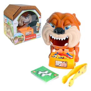 Jogo buldogue pega ossos Este jogo é perfeito para quem ama brincadeiras competitivas e divertidas.Com design divertido e moderno, o jogo é interativo e desafia os jogadores a pegar os ossos da boca do buldogue sem desperta-lo, perfeito para treinar a agilidade do jogador.Sendo um brinquedo fácil e intuitivo para brincar, basta usar o pegador para roubar os osso da tigela com cuidado fazer com que o cão acorde.Feito com materiais de alta qualidade, o produto garante durabilidade e resistência, podendo brincar por horas sem preocupações. conta com:-manual de instruções;-24 ossos coloridos;-24 cartões-01 pegador;-01 buldogue com tigela. -necessário o uso de 03 pilhas aa não inclusas -não recomendado para crianças menores de 03 anos por conter peças pequenas que podem ser engolidas. especificações:material: plástico pp, papel cartonado e papel adesivo.Dimensões:-buldogue: alt.: 18cm x larg.: 15cm x profundidade: 20cm-pegador: comprimento: 13cm-ossos: comprimento: 2,5cm-cartões: 8cmpeso: aprox. 750g contém:01 jogo buldogue pega ossos