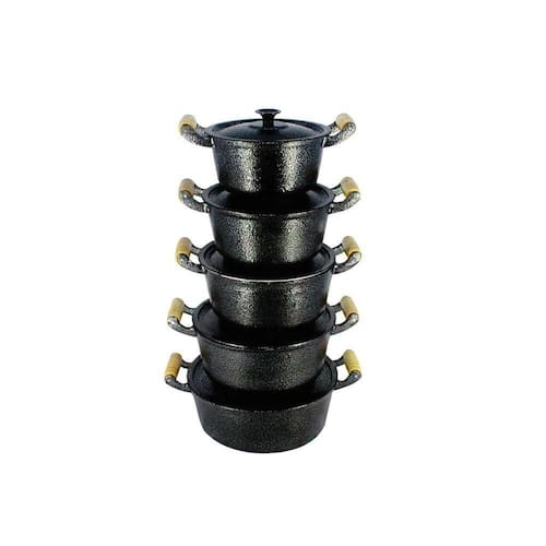 Jogo Caçarola Alumínio Fundid Craqueada Alça Madeira 16 a 24