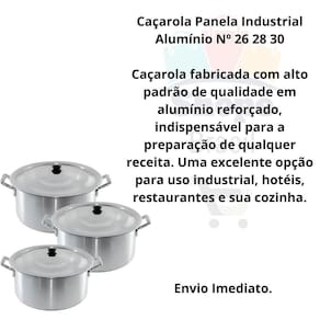 Jogo Caçarola Industrial 26/28/30 Alumínio Restaurante Hotel Caçarola Panela Industrial Alumínio Nº 26 28 30