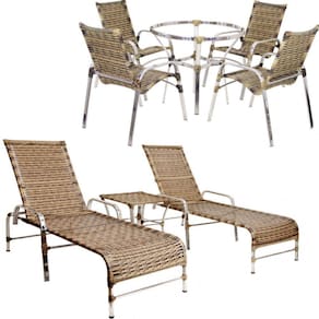 Nossos produtos são de altíssima qualidade e com design moderno, garantindo assim conforto e praticidade para seu bem-estar. Produzidos em estrutura de alumínio polido e revestida em fibra sintética. Mais leve e resistente do que o Ferro, o Alumínio também pode ser molhado, pois não enferruja. Possuem proteção UV, aumentando sua durabilidade contra ações do tempo. Podendo ficar exposto à sol e chuva por bastante tempo. Ideais para decorar ambientes clássicos e modernos como: Cozinha, Sala, Quarto, Varanda, Edícula, Piscina, Jardim, Área de lazer, Festa, Reunião, Churrasco. Disponibilizamos diversas opções de cores. Fibra Sintética especial - Resistente ao Sol e chuva com proteção UV. A fibra sintética da Trama /UP Mobille é produzida com materiais de altíssima qualidade. Essa característica oferece resistência suficiente para o móvel ser utilizado em decorações de ambientes externos - sem preocupações com sol ou chuva. Estrutura em Alumínio ? Soldado na solda MIG, de alta resistência, alta durabilidade e garantia de 12 meses de fábrica. Produzida em estrutura de alumínio polido, durabilidade cerca de 8 à 10 anos, material pode ser molhado e utilizado em áreas abertas, exposto a sol e chuva. Design Moderno ? Combinação em vários ambientes com traços modernos e clássicos, para todos os gostos! Fácil de Limpar ? Utilize Sabão Neutro para a limpeza das fibras e estruturas. Para deixar o alumínio brilhoso, poderá ser passado cera automotiva em pouca quantidade, mantendo assim o brilho de suas peças. Passe um pouco de cera com um pano macio, logo em seguida, passe outro pano macio, porém seco para retirar a cera. Deixando assim, com o brilho novamente!