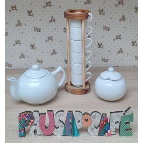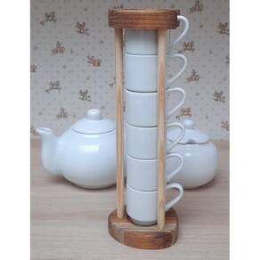 Suporte Madeira pinus e Teca p/ 6 xícaras empilhaveis