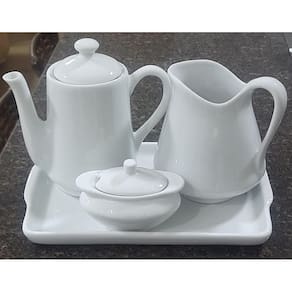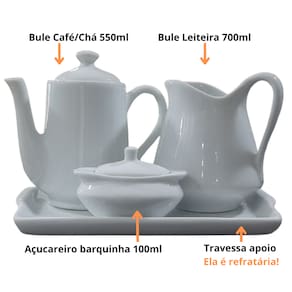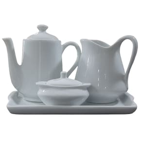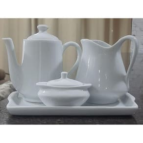 Jogo Café e Chá Mesa Posta, Bandeja + Bule Bico Longo 550ml + Açucareiro100ml + Jarra Leiteira 700ml - Kit Porcelana