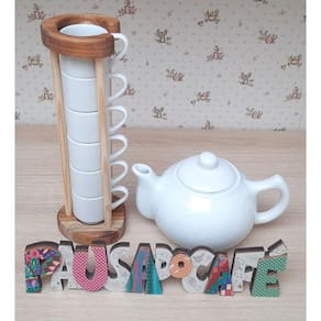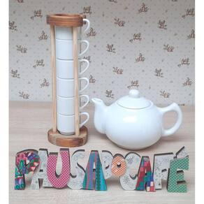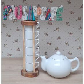 Suporte Madeira pinus e Teca p/ 6 xícaras empilhaveis