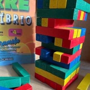 Descrição: O clássico Caiu Perdeu também conhecido como Jenga ou Torremoto ou Torre de Madeira ou de equilibrio é uma ótima pedida para a diversão em família.