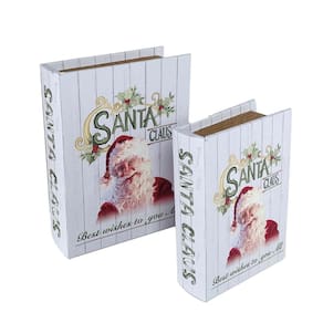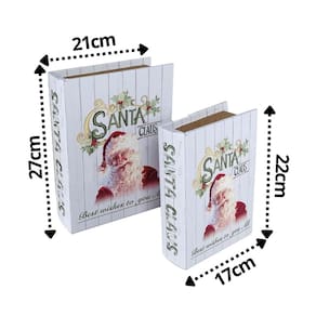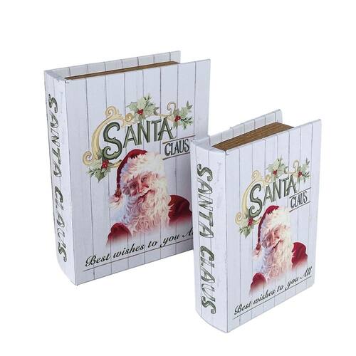 Jogo de Caixa Livro Decorativo Natalino – 2 Unidades em MDF com Revestimento Estampado de Santa Claus