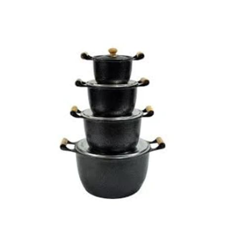Jogo Caldeirão Alumínio Craqueado Alça Madeira 12 ao 18cm