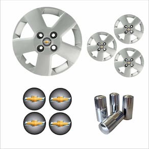 JOGO DE CALOTA ARO 14 + EMBLEMAS RESINADOS + TAMPA DE VENTIL CROMADA
