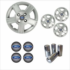 JOGO DE CALOTA ARO 14 + EMBLEMAS RESINADOS + TAMPA DE VENTIL CROMADA