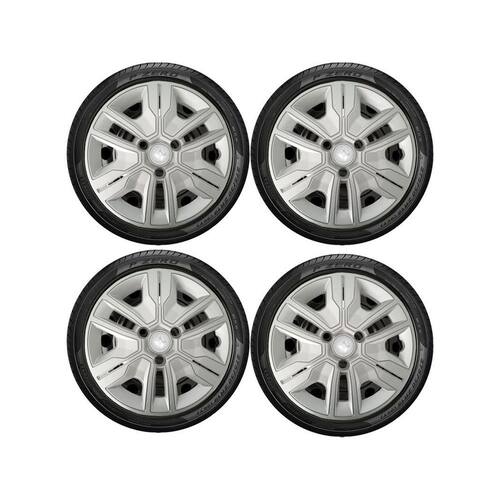 Cor: prata com emblema cinza Se chegou até aqui, é porque vai deixar seu carro mais bonito e seguro Além dos benefícios estéticos, as calotas protegem sua roda das pedras e detritos em geral. Garantindo a ventilação e proteção do seu sistema de frenagem pastilhas de freios / tambores de freio . Esses são alguns dos motivos pelos quais devemos manter nosso veículo com todos os acessórios e com a manutenção em dia. Estes detalhes aumentam o valor do bem quando da venda ou troca por um modelo mais novo. Trabalhamos, somente, com os melhores fornecedores do mercado, assim, podemos lhe oferecer produtos com os seguintes diferenciais: Acabamento impecável, com pintura automotiva de alta resistência; Designer moderno e visual bonito ao carro; Parece roda; Seu carro personalizado do seu jeito; Estilo com o melhor custo benefício. Fácil instalação. Importante: caso esteja na região do abc instalamos gratuitamente as suas calotas, basta vir em uma de nossas lojas. Características: Fixação da calota Parafusos: possui sistema de fixação anti perda preso por parafusos nas rodas. Encaixe: possui sistema universal, com travas reforçadas para fixação interna na roda, com anel em aço inoxidável para regular a pressão e encaixar nas rodas. Dimensões fabricado no aro 14 polegadas 38 cm de diâmetro . Compatibilidade compatível com todas as rodas de ferro aro 14, da montadora explícita no título do anúncio. Marca Grid calotas Material de fabricação polipropileno de alta resistência. Cores cor do produto exatamente como na foto. de 1 meses para defeitos de fabricação. Itens inclusos Jogo contendo 4 calotas + 4 emblemas personalizado com a logomarca da fabricante. Exatamente como na foto do anúncio. 2- o produto é novo R: sim, todos nossos produtos são novos. 3- o produto acompanha o emblema da marca R: sim, acompanha o emblema conforme a foto. 4- o valor é do jogo kit com 4 peças ou unidade R: neste anuncio você receberá 4 peças 4 unidades. Para comprar a unidade peça o link no campo de perguntas. Cuidados com seu produto Deve ser lavado somente com sabão neutro. Não deve utilizar produtos corrosivos e que contenham solupan. Marca: Não Informado