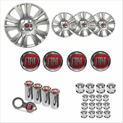 JOGO DE CALOTA ARO 15 + EMBLEMAS RESINADOS + TAMPA DE VENTIL COM ANTIFURTO + CAPA DE PARAFUSO