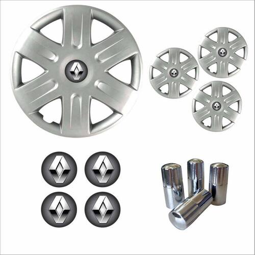 JOGO DE CALOTA ARO 15 + EMBLEMAS RESINADOS + TAMPA DE VENTIL CROMADA