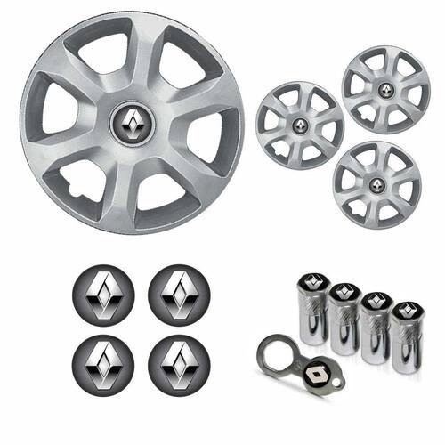 JOGO DE CALOTA ARO 15 + EMBLEMAS RESINADOS + TAMPA DE VENTIL COM ANTIFURTO