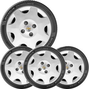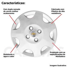 Jogo calota gm corsa celta classic aro 13 com emblema 118cb Calota em plástico de alta resistência, Fabricado pela grid calotas com os mesmos padrões e exigências da montadora. Com logotipo incluso. Jogo de calotas para a linha chevrolet para roda de ferro aro 13. Características: - fabricado em plástico resistente - com dupla camada de verniz - resistente a água e calor - feito de acordo com os padrões da montadora - fixação: por parafusos - furação: 4x100 - cubo: baixo - cor: prata - referência: 118cb - marca: grid calotas Itens inclusos: - um 1 kit com quatro 4 calotas com emblema incluso. Dimensões unitário - diâmetro: 37 cm - altura: 4 cm Instalação A instalação é feita de forma simples, podendo ser feita por você mesmo. Não necessita retirar todos os parafusos. de 30 dias para defeitos de fabricação. Sobre o envio Marca: Não Informado