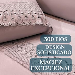 Imagine deitar-se após um dia cheio e sentir a suavidade de um tecido 300 fios, que abraça a pele com frescor e aconchego. O bordado inglês adiciona aquele detalhe clássico e elegante que dá charme especial ao quarto, criando uma atmosfera de luxo e carinho.