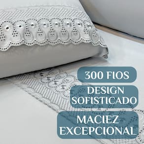 Imagine deitar-se após um dia cheio e sentir a suavidade de um tecido 300 fios, que abraça a pele com frescor e aconchego. O bordado inglês adiciona aquele detalhe clássico e elegante que dá charme especial ao quarto, criando uma atmosfera de luxo e carinho.