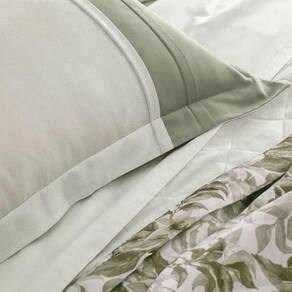 Acabamento Sobre lençol estampado com dobra feita e bainha comum; Lençol com elástico estampado; Fronha estampada com 3 abas de 5cm e detalhe contrastante na cor verde Eucalipto; Toque Supremo; Altamente respirável; Fácil de passar; Natural; Maleável e com ótimo caimento; Visual com leve brilho Marca: Não Informado