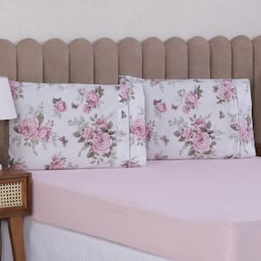 Jogo de Cama Casal 3p Lençol + Fronha Esmeralda Percal 100% Algodão Cor: Floral rosa Mais beleza para o seu dia a dia e conforto para as suas noites de sono.