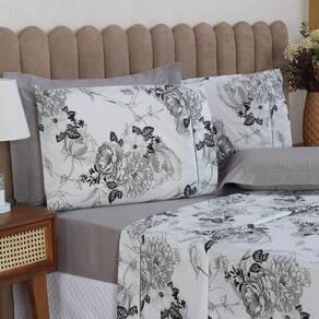 Jogo de Cama Casal 4p Lençol + Fronha Esmeralda Percal 100% Algodão Cor: Floral cinza Mais beleza para o seu dia a dia e conforto para as suas noites de sono.
