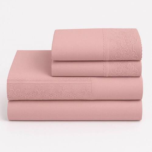 Jogo Cama Casal 4Peças Bordado Inglês Exclusive Vivaldi Rosa