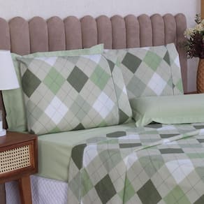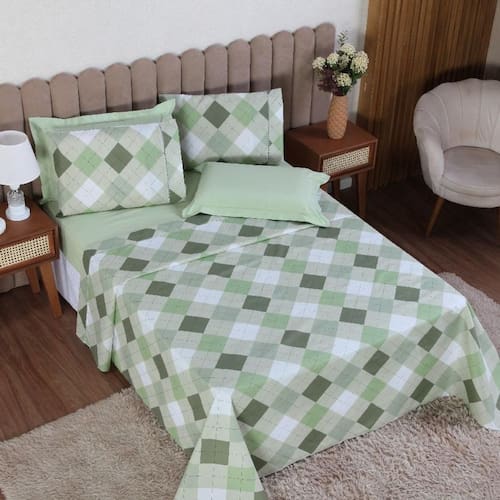 Jogo de Cama Casal 6p Lençol + Fronha Esmeralda Percal 100% Algodão Cor: Xadrez verde Mais beleza para o seu dia a dia e conforto para as suas noites de sono.