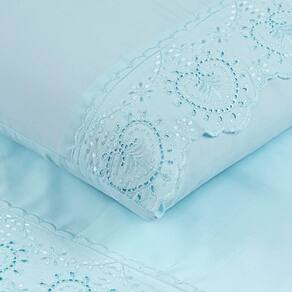 O Jogo de lençol para cama Casal Padrão com 04 peças confeccionado em tecido Micropercal 200 fios, detalhes em bordado inglês na fronha e no lençol de cima. Possui alto padrão de qualidade, proporciona conforto e sofisticação.