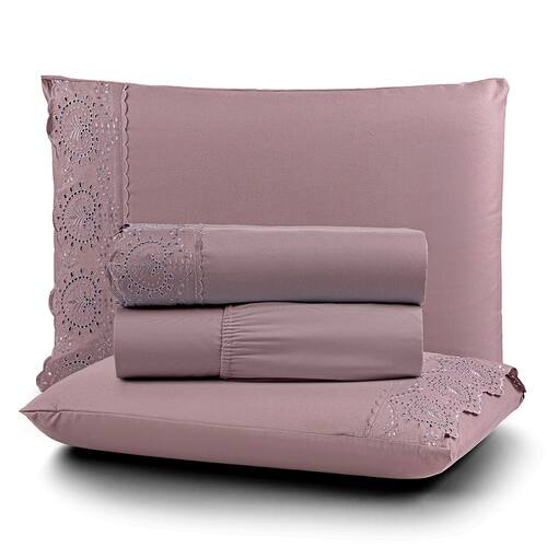 O Jogo de lençol para cama Casal Padrão com 04 peças confeccionado em tecido Micropercal 200 fios, detalhes em bordado inglês na fronha e no lençol de cima. Possui alto padrão de qualidade, proporciona conforto e sofisticação.