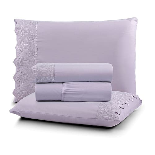 Jogo Cama Casal Cherry Bordado Inglês 4pç 100% Poliéster - Lilas - Lilás