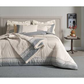 O jogo de cama Castani tem o estilo tradicional clássico, trazendo em sua composição estampa formando delicadamente desenhos de arabescos em tons de azul e fundo bege, facilitando combinações e deixando o quarto mais confortável e clean. Possui 150 fios e Selo Algodão Soft, pois seu tecido é confeccionado em 100% algodão com tecnologia diferenciada. Todas essas combinações resultam em um toque sedoso, oferecendo maciez e aconchego para o seu lar. O sobre lençol possui bainha de 3cm, deixando a arrumação da cama mais elegante. O lençol de elástico é estampado. Fica ajustado ao colchão, colaborando com a organização da cama no dia a dia e também contribuindo para uma noite de descanso agradável. O jogo de 3 peças Contém: 1 sobre lençol medindo 1,80 x 2,40 1 lençol de baixo com elástico medindo 100 x 200 x 35 cm 1 fronhas com abas medindo 50 x 70 cm Composição: 100% Algodão 150 Fios (13518)