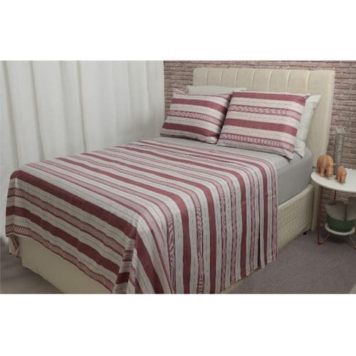 Conteúdo da embalagem: 1 Lençol de cima 250x220cm CxL 1 Lençol de baixo com elástico para colchão de 188x138cm até 30cm de altura CxLxA 2 Fronhas 70x50cm CxL