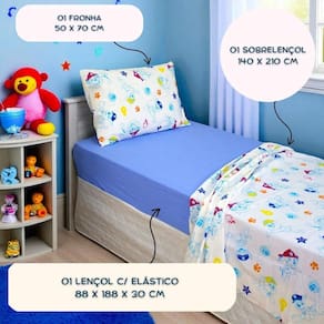 Lençol de baixo com elástico: . Comprimento: 188 cm . Largura: 88 cm . Altura: 30 cm - para colchões de até 30cm de altura