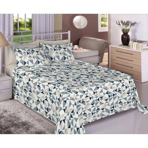 Jogo Cama King 4 Peças Algodão 150 Fios Geo Azul Estamparia