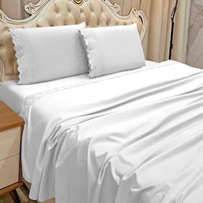 O Jogo de lençol para cama King com 04 peças confeccionado em tecido Micropercal 300 fios, detalhes em bordado inglês na fronha e no lençol de cima. Possui alto padrão de qualidade, proporciona conforto e sofisticação.