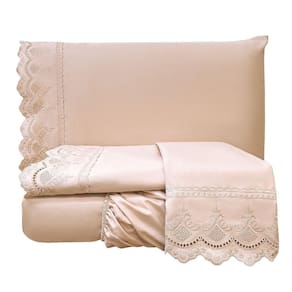 Jogo Cama King Angely Bordado Inglês 4 Pçs Rosé - Única