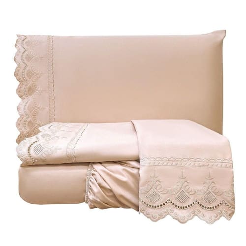 Jogo Cama King Angely Bordado Inglês 4 Pçs Rosé