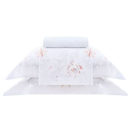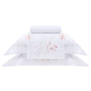 Conteúdo da embalagem:1 sobrelençol (280 x 270 cm); 1 lençol com elástico (193 x 203 x 40 cm); 2 fronhas (50 x 70 cm) N° Fios: 200 Fios